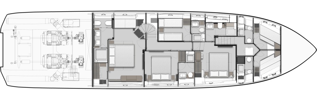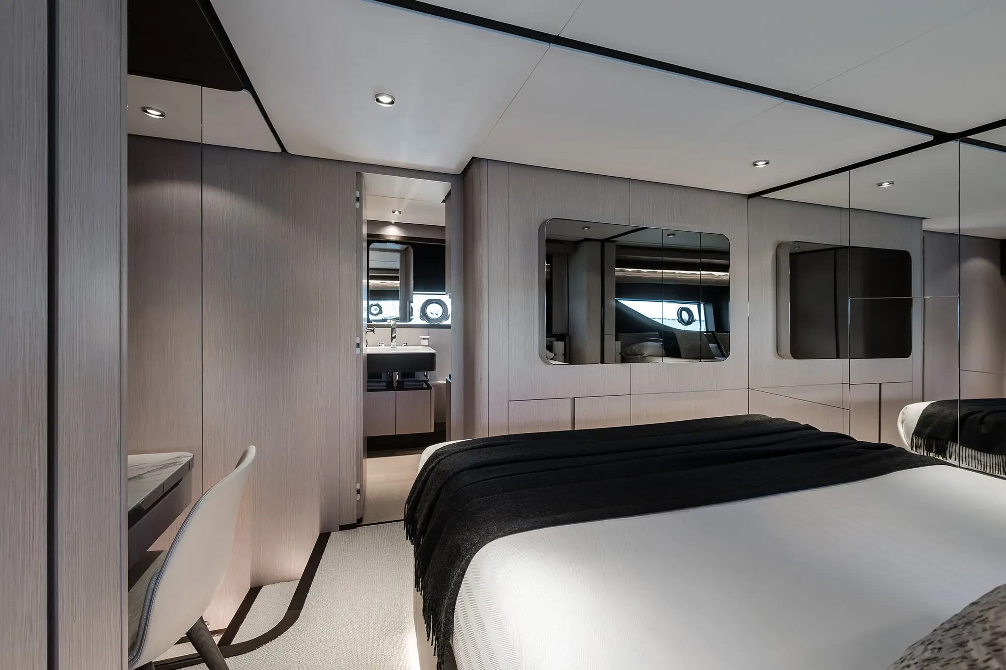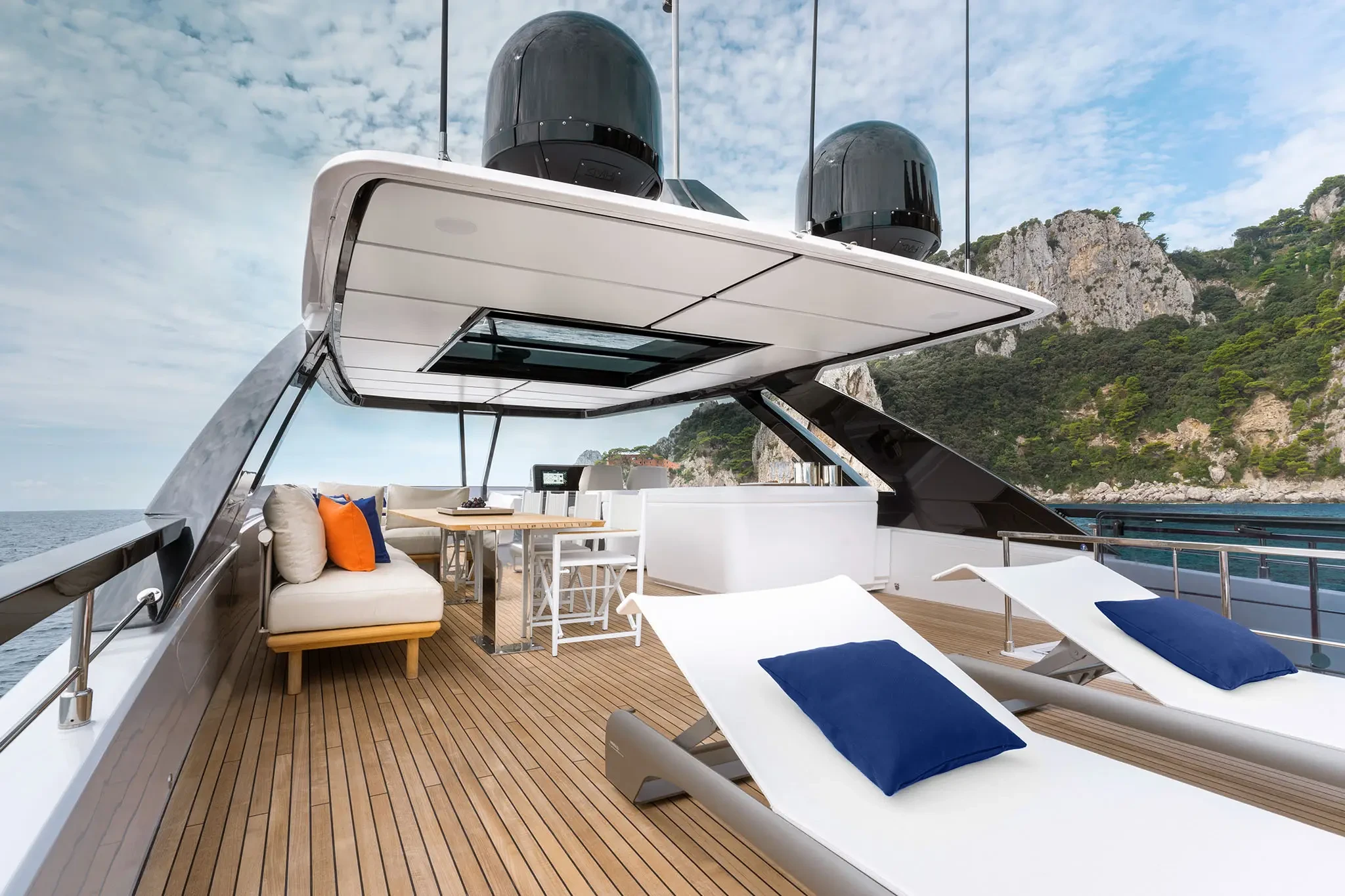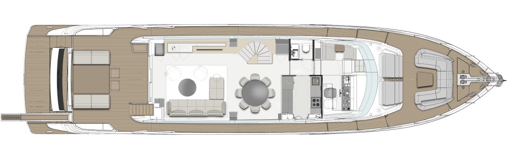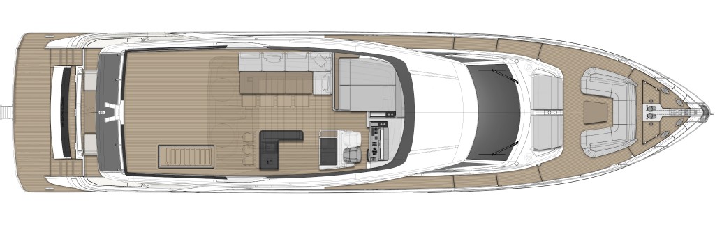 Diese Flybridge-Yacht zeichnet sich durch hochmoderne Design- und Technologielösungen aus, bei denen die stilistischen und architektonischen Elemente bis ins kleinste Detail harmonisch zusammenwirken.