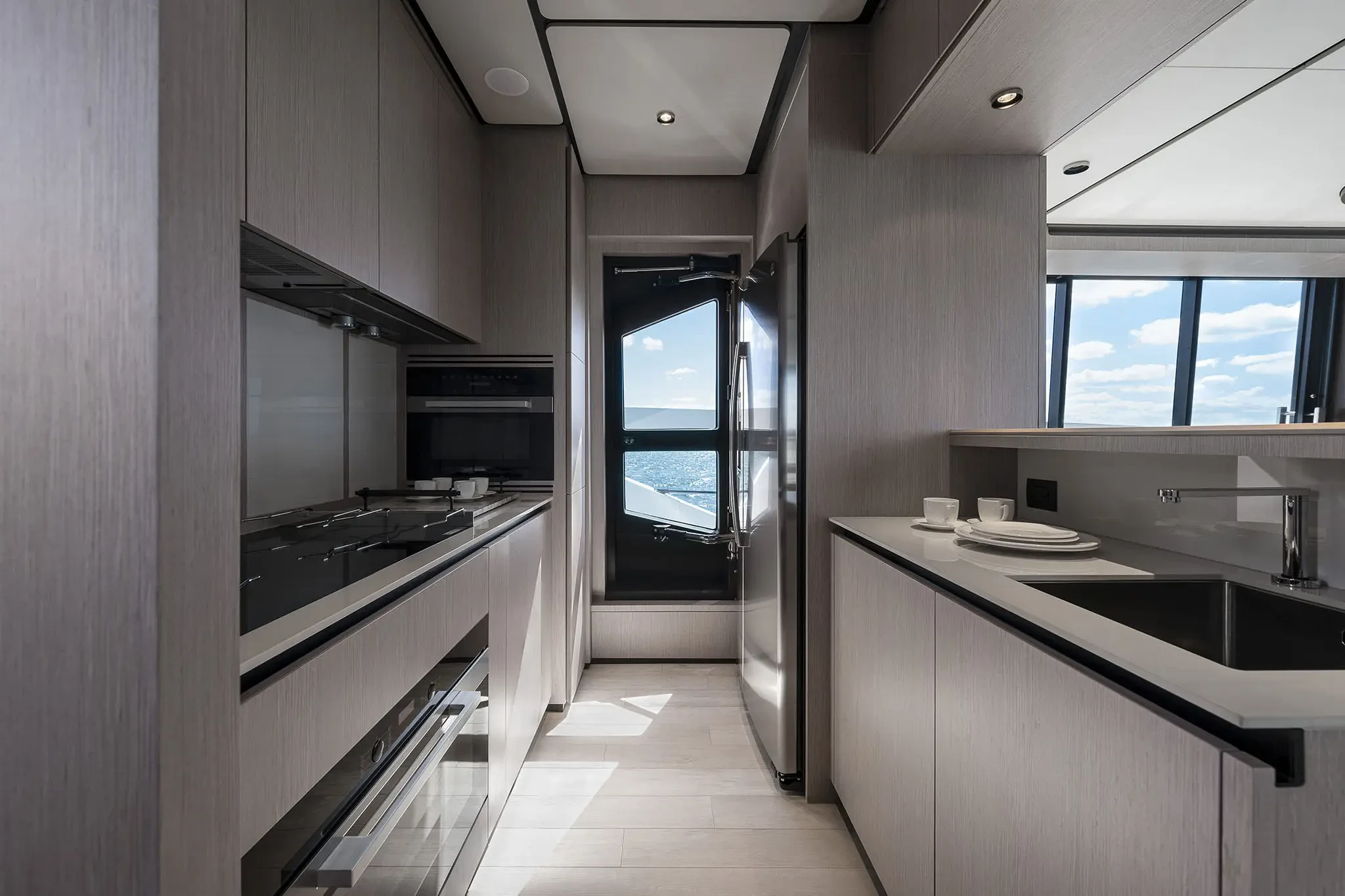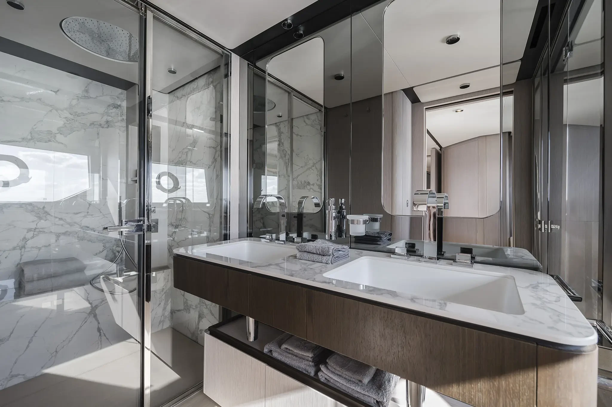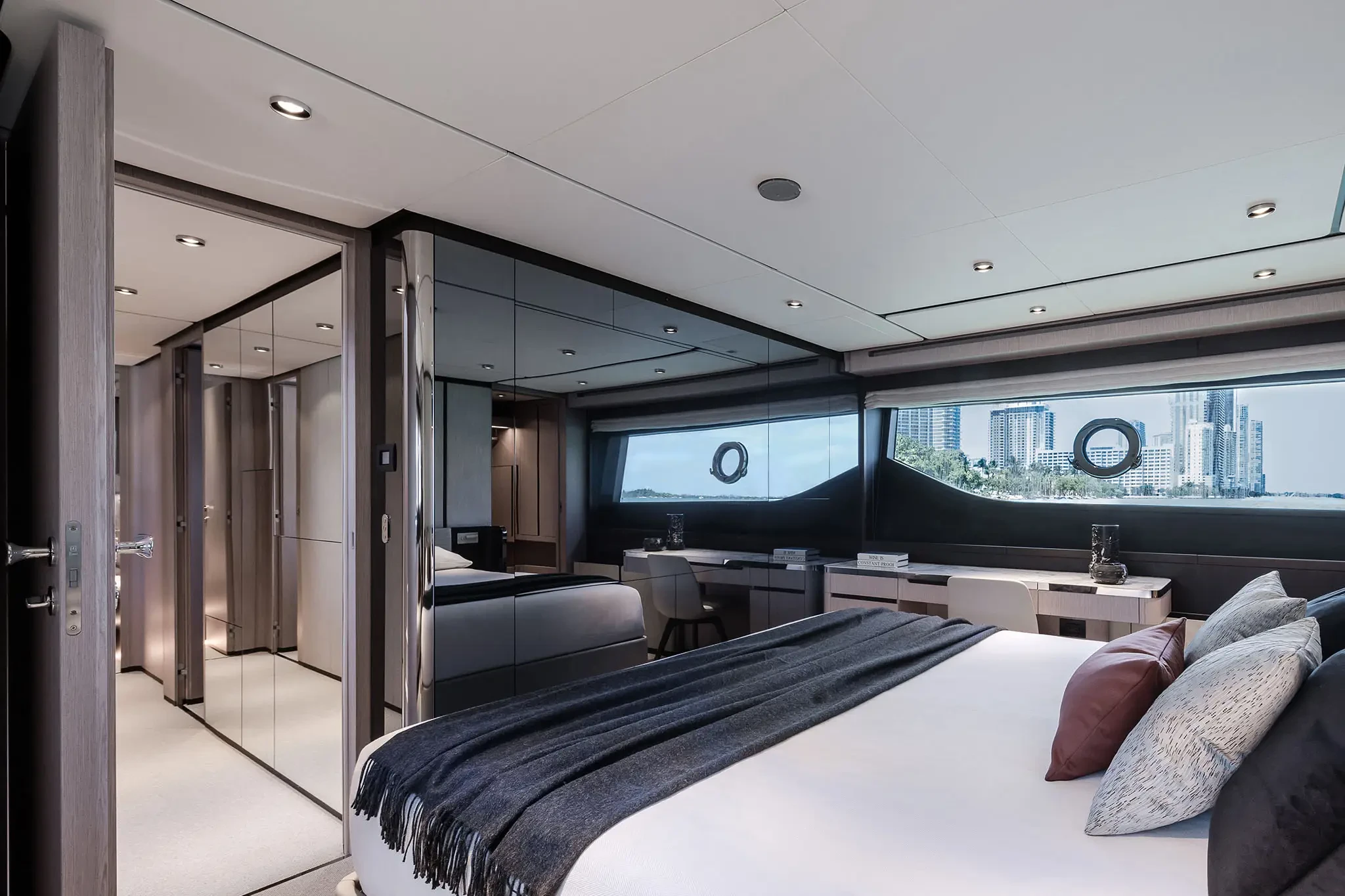 Diese Flybridge-Yacht zeichnet sich durch hochmoderne Design- und Technologielösungen aus, bei denen die stilistischen und architektonischen Elemente bis ins kleinste Detail harmonisch zusammenwirken.