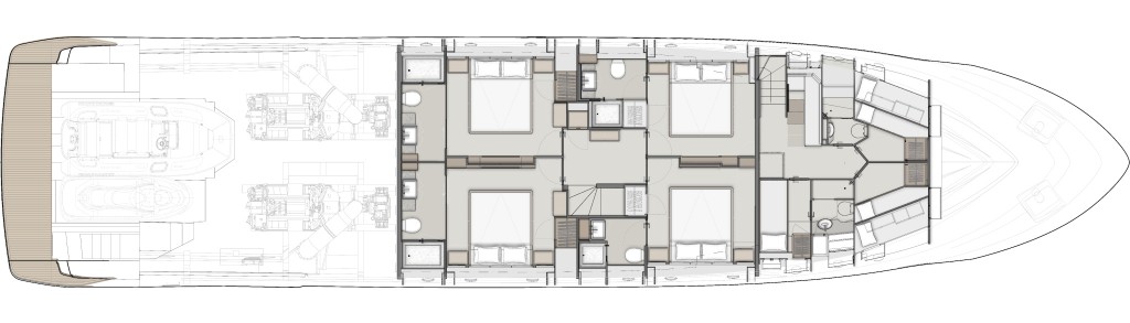 The experience on board becomes even more homely thanks to the possibility to choose between two interior design moods: Classic OR Contemporary, designed by the Italian studio IDEAEITALIA.