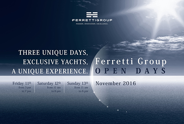 Ferretti Group Asia Pacific Ltd is delighted to announce the third edition of the Open Days, from 11-13 November 2016 at the Ferretti Group Service Centre in Hong Kong.